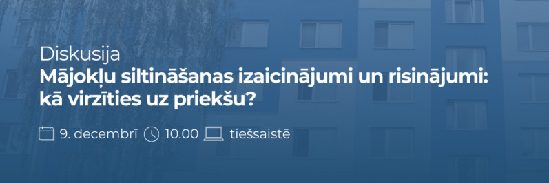 Latvijā mājokļi noveco, un ilgstoši nav notikusi to pietiekama renovācija, taču joprojām pastāv šķēršļi, kas kavē daudzdzīvokļu ēku atjaunošanu un energoefektivitātes pasākumu īstenošanu. Lai uzlabotu situāciju un meklētu konkrētus risinājumus, Valsts kontrole 9. decembrī plkst. 10.00–11.10 rīko tiešsaistes diskusiju “Mājokļu siltināšanas izaicinājumi un risinājumi: kā virzīties uz priekšu?”, kas būs skatāma Valsts kontroles Facebook lapā un Leta.lv ar surdotulkojumu.