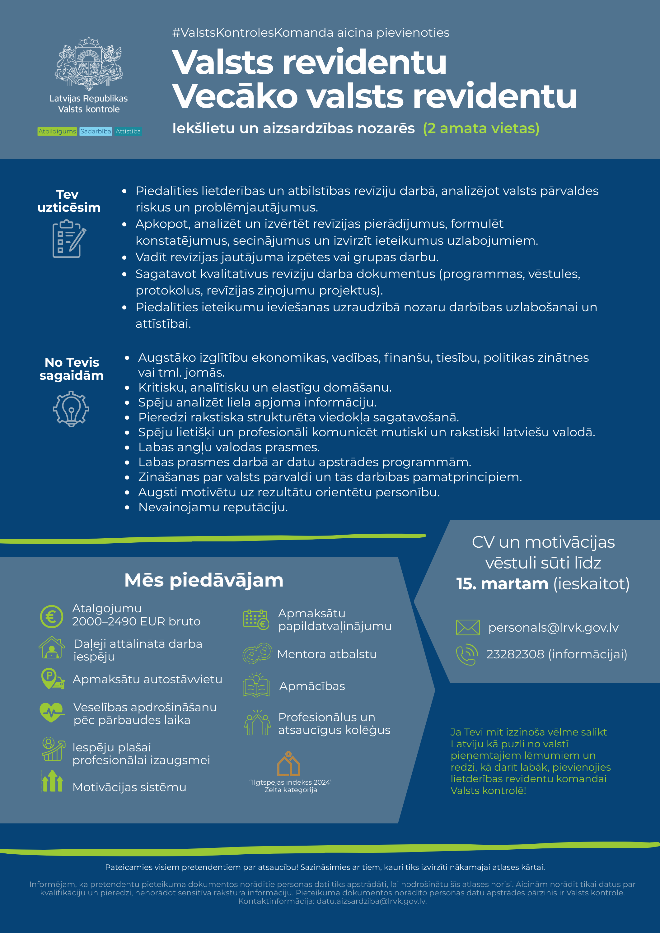 CV un motivācijas vēstuli gaidīsim līdz 2026. gada 15. martam (ieskaitot)
